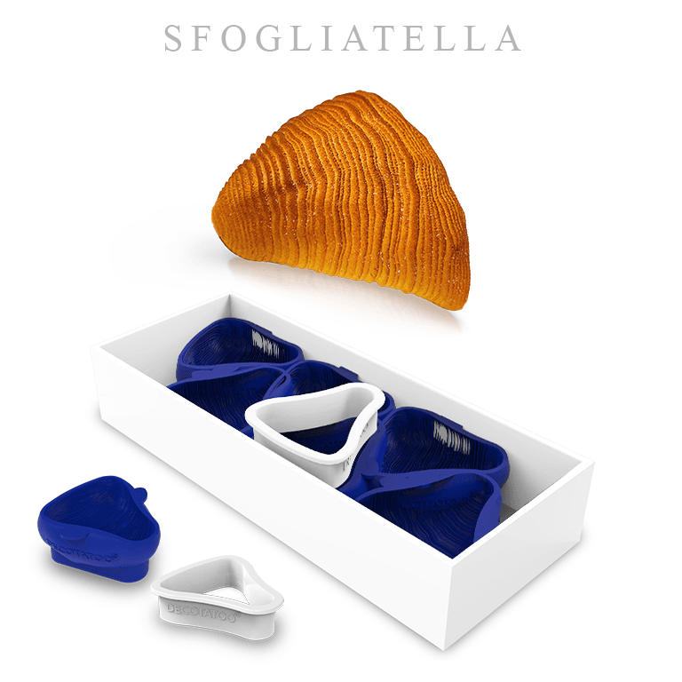 Imaginé par le chef Riccardo Buricchi, ce moule rend hommage à la célèbre Sfogliatella, une pâtisserie traditionnelle italienne à la texture croustillante et délicatement feuilletée. Son design texturé reproduit l’effet des fines couches de pâte superposées, offrant un rendu ultra-réaliste pour des créations feuilletées revisitées.
